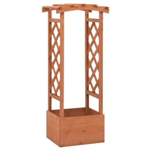 Ez a fa rácsos ültető egy csipetnyi bájt csempész kültéri környezetébe. A kerti ültető tömör fenyőfából készült, így tartós és időjárásálló. Az ültető nagy virágládájába zöld növényeket és virágokat ültethet. A kétoldali rács és a boltív kiváló támaszt biztosít a kúszónövények számára. Amikor felkúsznak a növények, nem tudja majd levenni a szemét erről a gyönyörű ültetőről.
