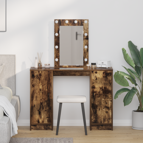 vidaXL Fésülködőasztal LED Lámpákkal Füstölt Tölgy 102x33x135 cm bútor termékleírás