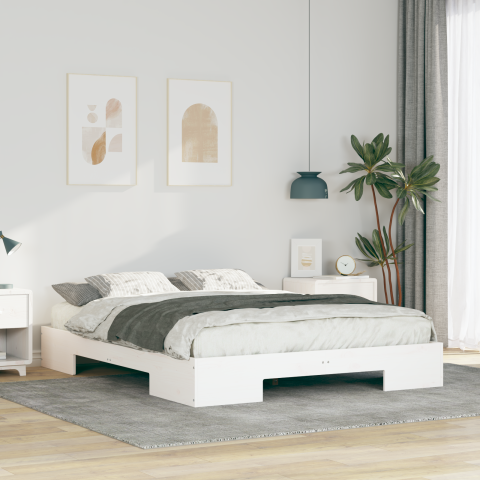 1 kép vidaXL Földi ágykeret tárolóval Fehér 160 x 200 cm Tömör fenyőfa