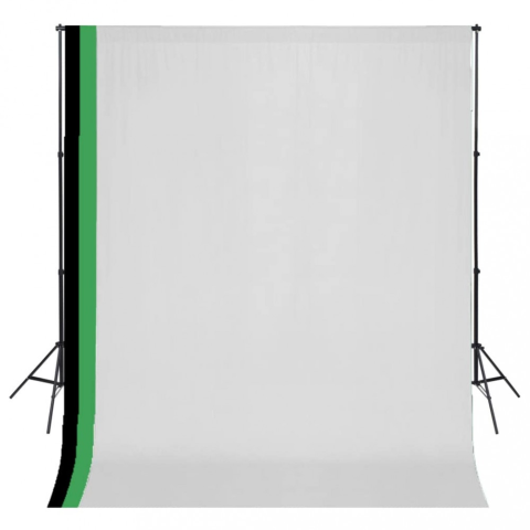 vidaXL Fotóstúdió-felszerelés 3 pamut háttérrel, kerettel 3 x 3 m világítás 1 kép
