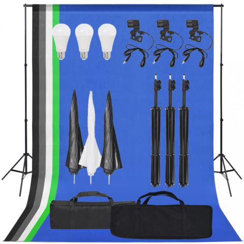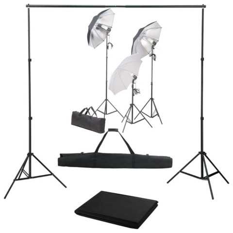 10 kép vidaXL Fotóstúdió-felszerelés lámpákkal és háttérrel