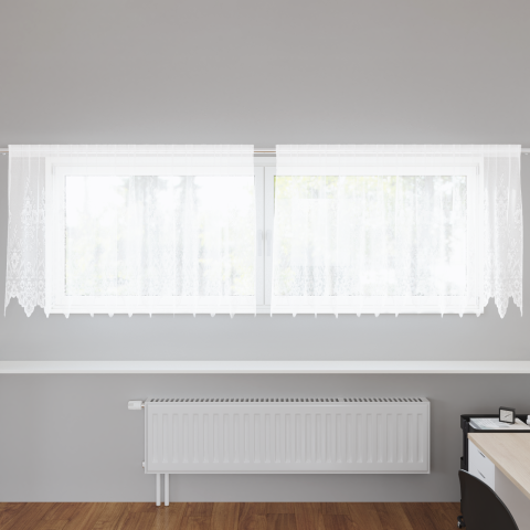 Ez az elegáns csipkefüggöny igazán feldob bármilyen nappalit vagy hálót! Ötvözi az egyszerűséget a funkcionalitással, miközben letisztult dizájnja van. A félig áttetsző anyag lágy világítást enged be, javítva a szoba hangulatát. Beltéri használatra készült, ez a fehér függöny tökéletes az elegancia hozzáadására, közben kényelmes és otthonos atmoszférát teremt. Különféle szobadekorációkhoz illeszkedve a csipkefüggöny minden ablakot a figyelem közép