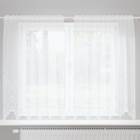 Ez az elegáns csipkefüggöny igazán feldob bármilyen nappalit vagy hálót! Ötvözi az egyszerűséget a funkcionalitással, miközben letisztult dizájnja van. A félig áttetsző anyag lágy világítást enged be, javítva a szoba hangulatát. Beltéri használatra készült, ez a fehér függöny tökéletes az elegancia hozzáadására, közben kényelmes és otthonos atmoszférát teremt. Különféle szobadekorációkhoz illeszkedve a csipkefüggöny minden ablakot a figyelem közép