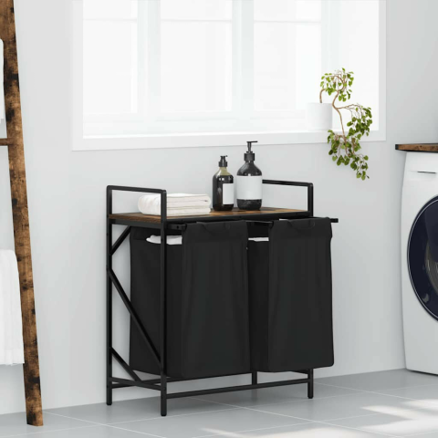 vidaXL füstölt tölgy mosodai kosár 2 rekeszes polccal bútor termékleírás
