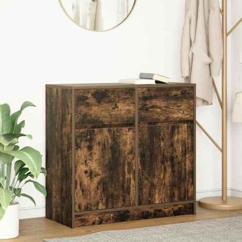 vidaXL füstölt tölgy szerelt fa tálalószekrény fiókos 80x34x76 cm bútor termékleírás