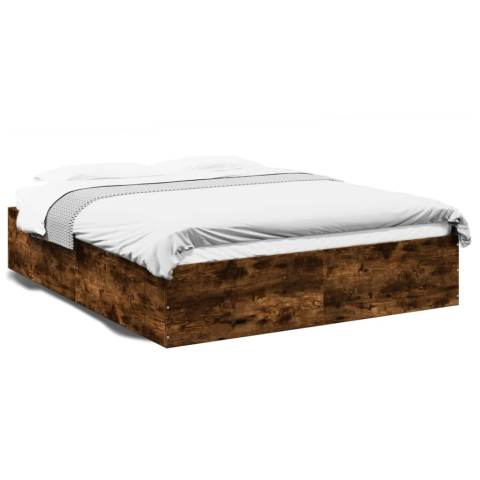 1 kép vidaXL füstös tölgyszínű szerelt fa ágykeret 150 x 200 cm