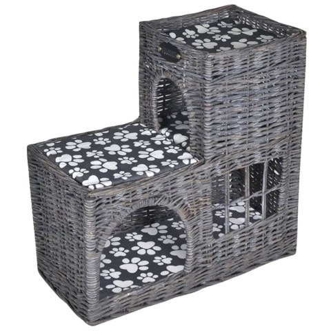 Ez a puha párnával ellátott masszív, de könnyűsúlyú fűzfa macskaház/kastély biztonságos menedéket nyújt kedvencének a játékhoz és a pihenéshez. Ez egy extravagáns és kidolgozott szőtt macskaágy. A hozzátartozó vastagon bélelt puha párnák teszik igazán han