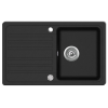2 kép vidaXL Gránit konyhai szűrőkosaras egymedencés fordítható mosogató fekete