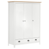 1 kép vidaXL Hill fehér 3 ajtós tömör fenyőfa ruhásszekrény 127x50x170 cm