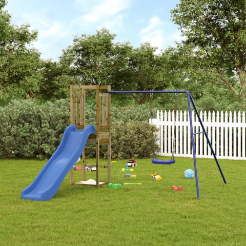 1 kép vidaXL impregnált fenyőfa játszóház csúszdával és hintával