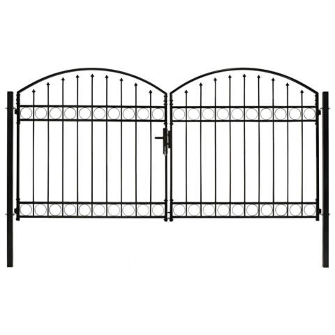 1 kép vidaXL Ívelt tetejű kétajtós fekete acél kerítéskapu 300 x 150 cm