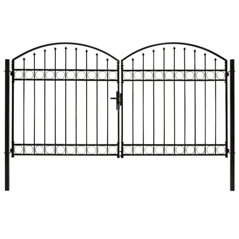 vidaXL ívelt tetejű kétajtós fekete acél kerítéskapu 300 x 175 cm
