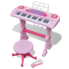 2 kép vidaXL Játék 37 billentyűs zongora székkel és mikrofonnal rózsaszín