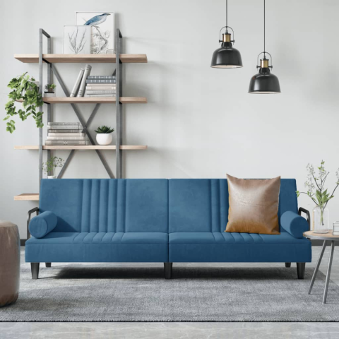 Teljes vidaXL kék bársony kanapéágy karfákkal termékleírás