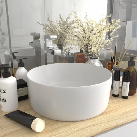 1 kép    vidaXL kerek matt fehér kerámia luxus mosdókagyló 40 x 15 cm