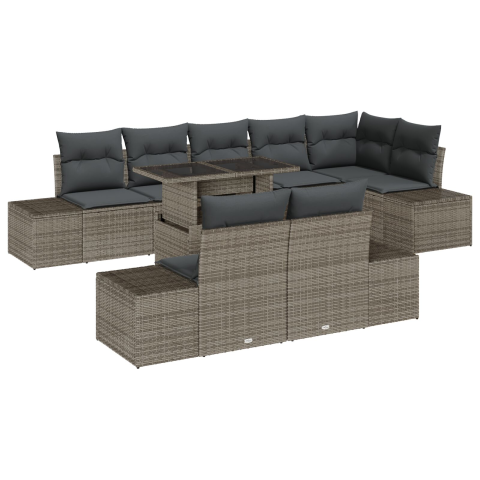 vidaXL Kerti Kanapé Szett 9 darab Szürke Rattan Kerti asztalok (3349205)