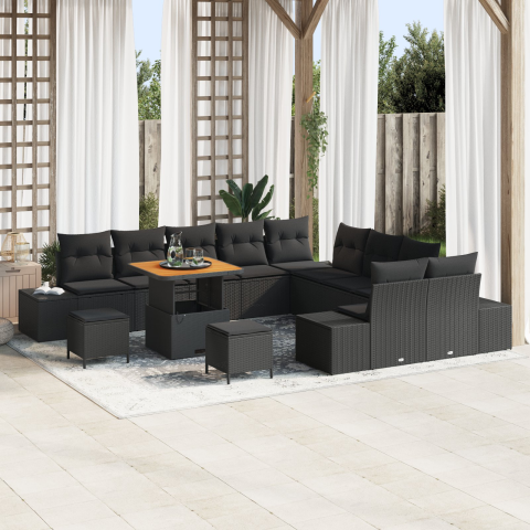 vidaXL Kerti Kanapé Szett párnával 13 pcs Fekete Poli rattan (3362839)
