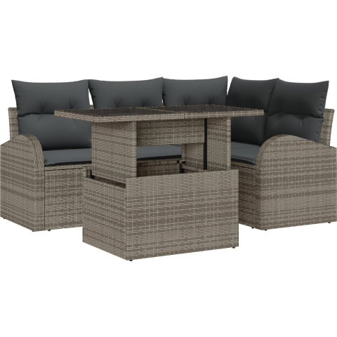 vidaXL Kerti Kanapé Szett párnával 5 pcs Szürke Poli rattan (3348635)