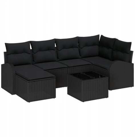 vidaXL Kerti Kanapé Szett párnával 7 pcs Fekete Poli rattan (3354792)