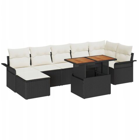 vidaXL Kerti Kanapé Szett párnával 8 pcs Fekete és krémszínű (3349361)