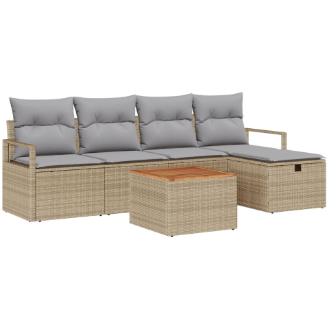 1 kép vidaXL Kerti Kanapé Szett párnával tárolóval 6 pcs Bézs Poli rattan (3360864)