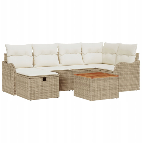 1 kép vidaXL Kerti Kanapé Szett párnával tárolóval 7 pcs Bézs Poli rattan (3359484)