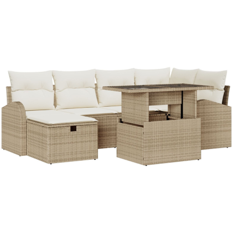 1 kép vidaXL Kerti Kanapé Szett párnával tárolóval 7 pcs Bézs Poli rattan (3361090)