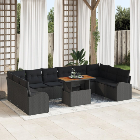 vidaXL Kerti Kanapé Szett tárolóval 11 pcs Fekete Poli rattan (3358375)