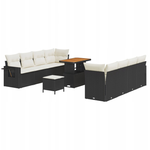 vidaXL Kerti Kanapé Szett tárolóval 11 pcs Fekete Poli rattan (3361720)