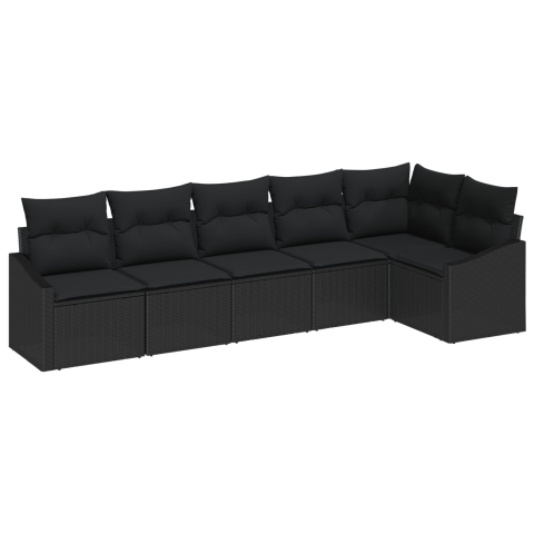 1 kép vidaXL Kerti kanapészett 6 darabos Fekete Poli rattan, poliészter, acél (3355412)