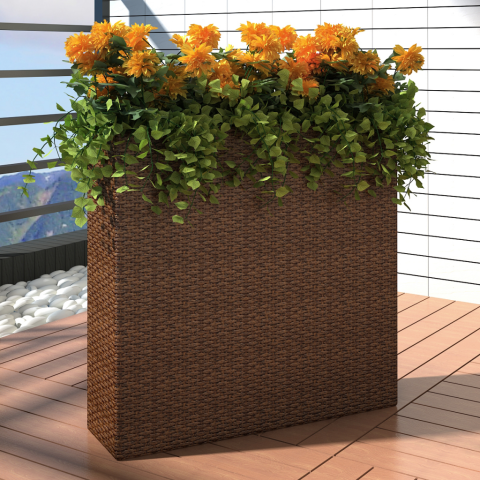 Ez a bájos magaságyás szett 1 db rattan virágtartóból és 4 db kivehető kaspóból áll. Ez a tartós, vízálló rattanból készült virágtartó remek kiegészítője lesz külterének. Szorosan fonott kialakításának köszönhetően extra stabilitással rendelkezik. Mindegyik rattan virágtartóba 4 műanyag virágcserép került, így ez a virágtartó-szett hosszú élettartammal rendelkezik. Mindenféle növény és virág ültethető ezekbe a kaspókba. A szállítmány 1 db vir