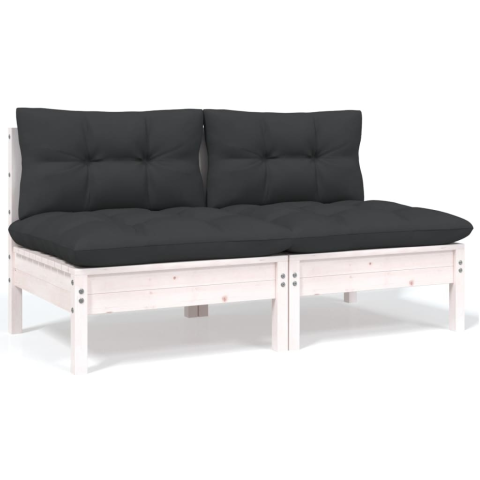vidaXL kétszemélyes fehér tömör fenyőfa kerti kanapé párnákkal kerti bútor termékleírás