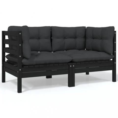 Teljes vidaXL Kétszemélyes fekete tömör fenyőfa kerti kanapé párnákkal termékleírás