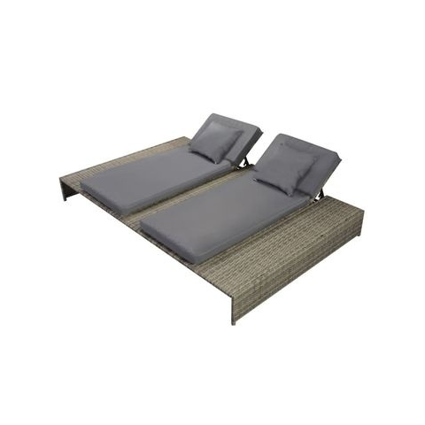 Teljes vidaXL kétszemélyes szürke polyrattan napozóágy párnával termékleírás