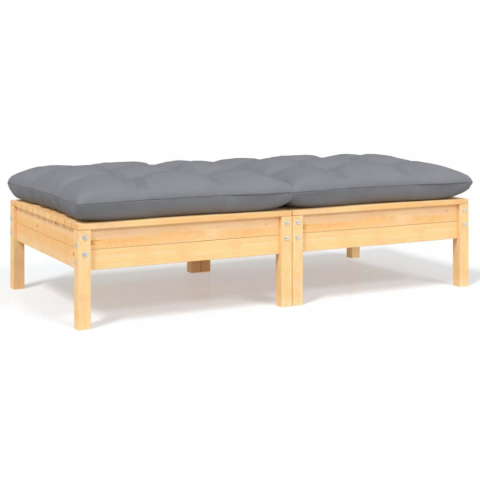 Teljes vidaXL kétszemélyes tömör fenyőfa kerti kanapé szürke párnákkal termékleírás