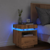 Teljes vidaXL kézműves tölgy színű éjjeliszekrény LED-fényekkel 40x39x48,5 cm termékleírás