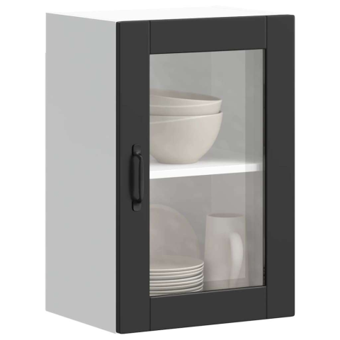 1 kép vidaXL konyhai fali szekrény üvegajtóval "Porto" Fekete színű