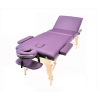 A kétzónás, összecsukható, favázas masszázsasztal professzionális és otthoni használatra is alkalmas. A nagy sűrűségű habbal bélelt párna rendkívül kényelmes, ellenáll a fertőtlenítőszereknek és a masszázsolajnak. A fejtámla és a kartámaszok állíthatók, csakúgy, mint az asztal magassága, így a felhasználó kényelmesen fekhet, a masszázsterapeuta pedig kiválaszthatja a kívánt munkamagasságot. Az asztalt könnyű összeszerelni. Bőrönd formájúra összec