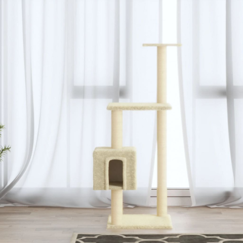 1 kép vidaXL Krémszínű macskabútor szizál kaparófákkal 104 cm