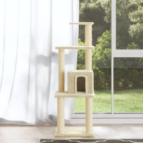 1 kép vidaXL krémszínű macskabútor szizál kaparófákkal 105 cm