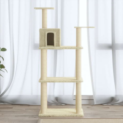 1 kép vidaXL krémszínű macskabútor szizál kaparófákkal 119 cm