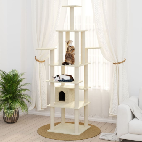 1 kép vidaXL krémszínű macskabútor szizál kaparófákkal 183 cm