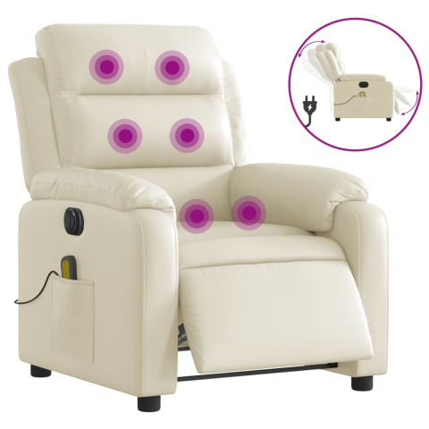 vidaXL krémszínű műbőr elektromos dönthető masszázsfotel (3205036)