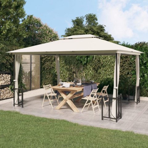 vidaXL krémszínű pavilon oldalfalakkal és dupla tetővel 3x4 m kerti bútor termékleírás