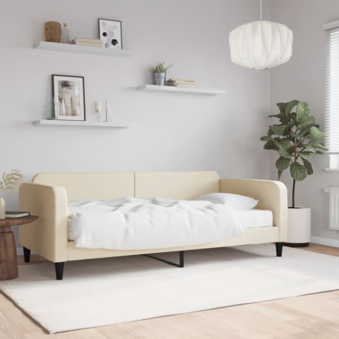 1 kép vidaXL krémszínű szövet kanapéágy matraccal 90 x 200 cm