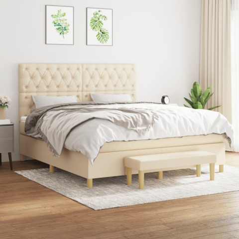 Teljes vidaXL krémszínű szövet rugós ágy matraccal 160 x 200 cm termékleírás