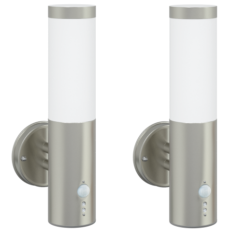 1 kép vidaXL Kültéri Fali Lámpa Mozgásérzékelővel 2 db Ezüst Rozsdamentes Acél IP44 (4005954)