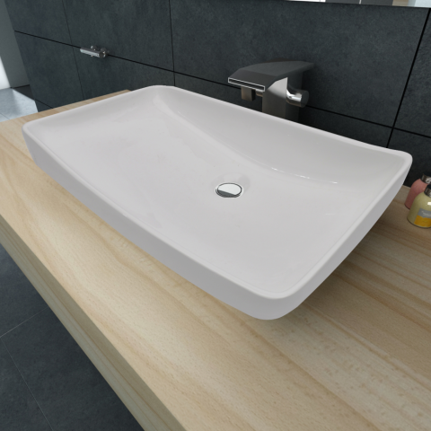 Ez a négyszögletű mosogató prémium kerámia, egy nagy hozzáadás a fürdőszobához, mosókonyhába vagy toalettbe, ez magas fényű modern és elegáns tervezés.Ez a művészi kerámia tartály több mint egy praktikus mindennapi használat, ez díszíti az életterét. Ez biztosan megfelel minden belső stílusnak. Ezen túlmenően elég könnyen tisztítható.A leeresztő lyuk 4,5 cm átmérőjű. Felhívjuk figyelmét, hogy nincs lefolyó a szállításba.