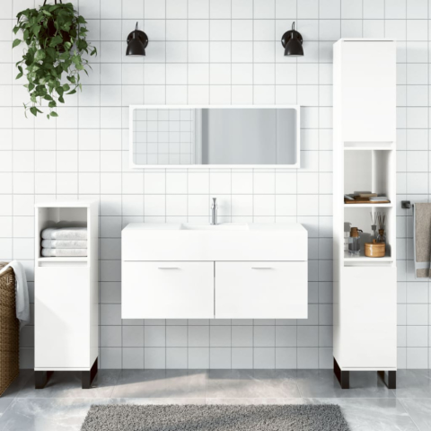 1 kép vidaXL magasfényű fehér szerelt fa fürdőszobaszekrény tükörrel
