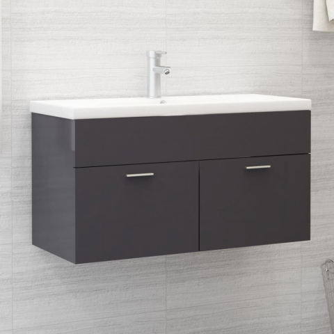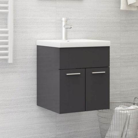 vidaXL Magasfényű szürke forgács mosdószekrény beépített kagylóval